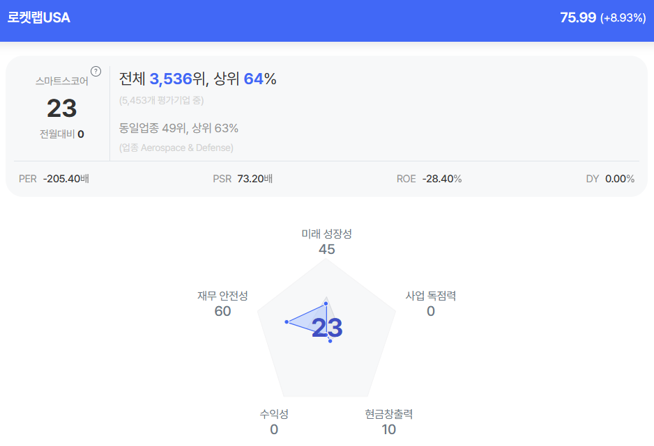 | 로켓랩 종목진단 (출처=초이스스탁) |