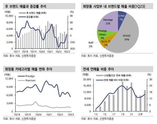 박은경 연구원은 "시장 평균보다 중국 화장품 수요를 더 긍정적으로 전망하고 있음에도 불구하고 2023년 이익전망을 하향 조정하는 이유는, 향후 1~2년간 동사의 지역 다변화, 브랜드 다변화를 위한 투자가 늘어날 수 있어 보수적 실적 전망이 필요하다 판단했기 때문"이라며는 "동사는 지난 코로나19 팬데믹 기간을 통해, 특히 2022년을 거치며, 중국이라는 단일 시장에서 ‘후 (Whoo)’라는 단일 브랜드로 꾸준한 성장을 만들어 내는 것이 얼마나 어려운 일인지를 절감했을 것으로 판단된다"고 설명했다.