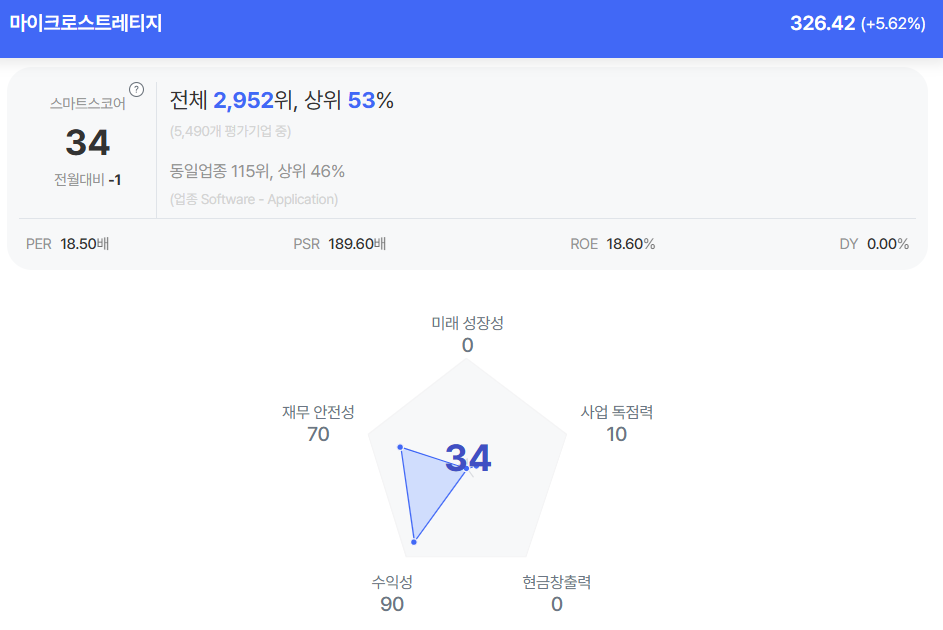 | 마이크로스트레티지 종목진단 (출처=초이스스탁) |