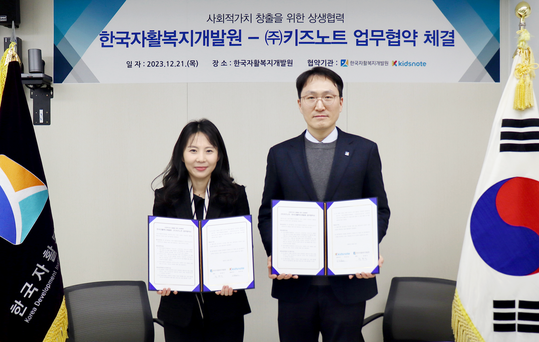| 한국자활복지개발원 업무 협약 체결. (사진=키즈노트) |