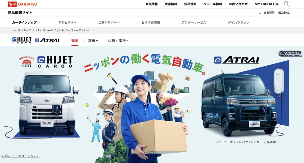 [알파경제=(고베) 우소연 특파원] 다이하쓰공업이 경상용 전기자동차(EV)인 ‘e-하이젯 카고’와 ‘e-아트레’를 지난 2일 출시했다고 니혼게이자이신문(닛케이)이 3일 보도했다. 이들 모델은 당초 2023회계연도 중 출시될 예정이었으나, 차량 인증 부정 문제로 개발 및 출시 일정이 1년 이상 지연됐다.