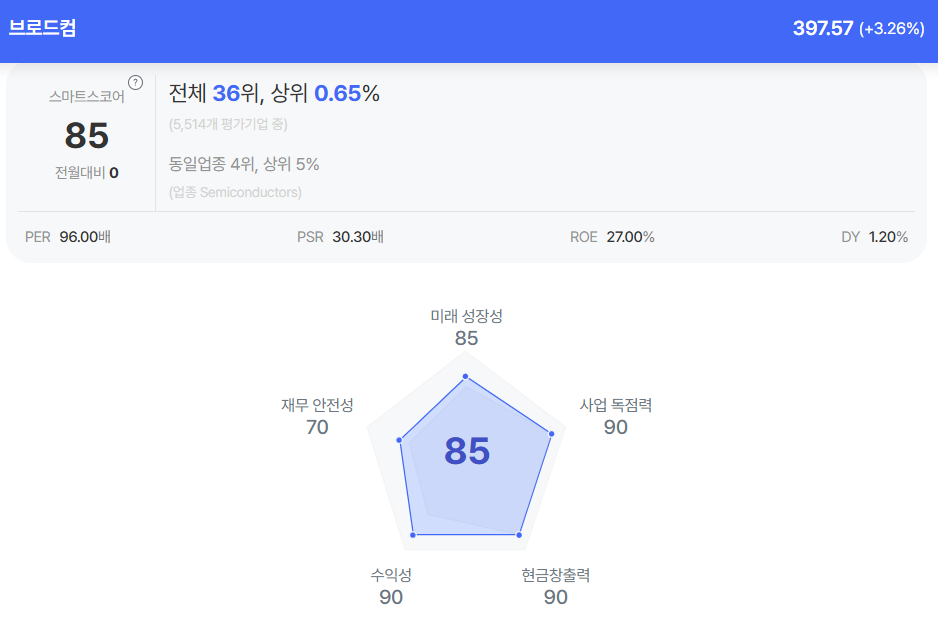 | 브로드컴 종목진단 (출처=초이스스탁) |