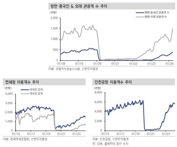 2분기부터는 중국인 단체관광객 입국이 점진적으로 회복할 전망이다. 2월 춘절 연휴 기간 한중 항공노선과 단체관광 여행 상품이 증가했다. 3월초 7년만에 중국 단체 관광객이 전세기를 이용해 인천공항으로 입국한 것을 시작으로 단체관광객 입국이 점차 가시화되고 있다는 분석이다.