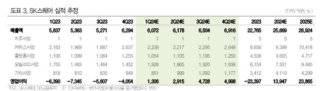 신은정 DB금융투자 연구원은 "이로써 기존 순현금 5100억원과 SK쉴더스 잔여 매각 대금 4500억원, 그리고 크래프톤 2600억원, SK하이닉스 등 배당금 1800억원 등 약 1.4조원의 재원을 보유하게 된 것으로 추정된다"고 분석했다.