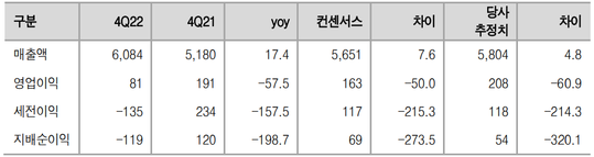 여기에 4분기 환율 하락으로 인한 환차손 2천억원의 발생, 순이익은 적자 전환했다. 이로써 2022년 연간 매출액과 영업이익은 각각 17.6% 증가, 22.8% 하락하면서 마무리했다.