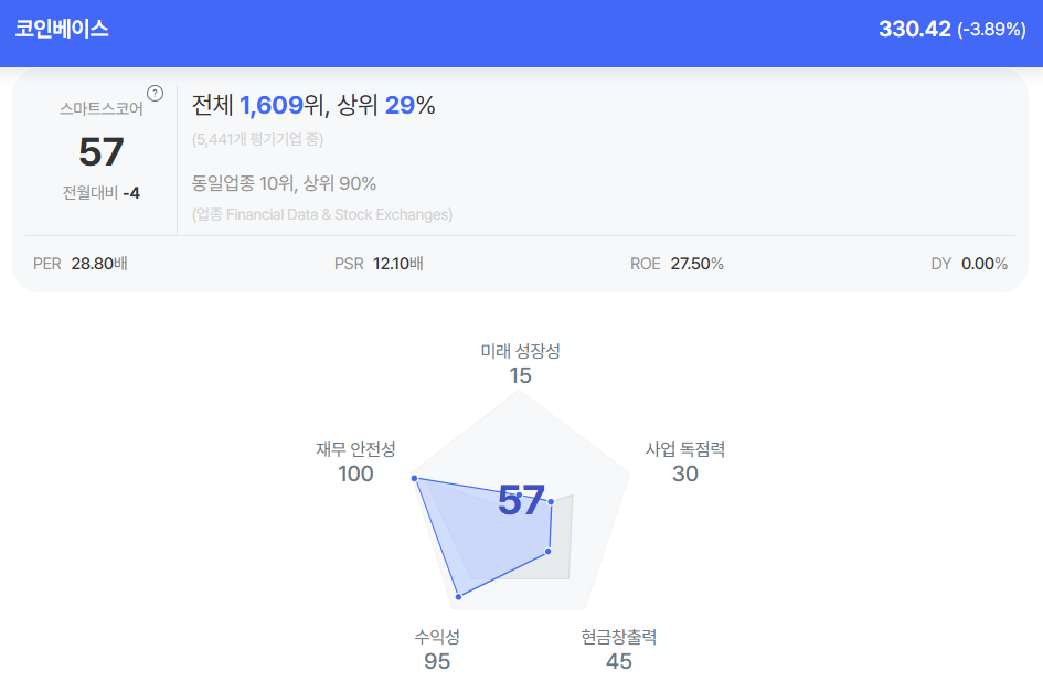 | 코인베이스 종목진단 (출처=초이스스탁) |