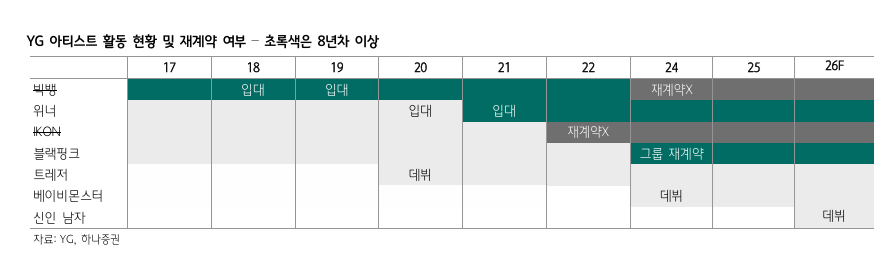 | 자료: YG, 하나증권 |
