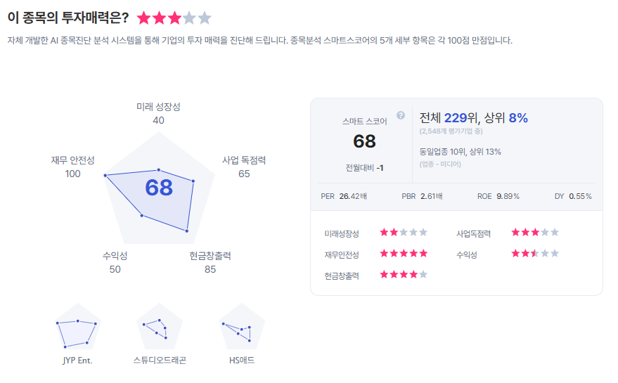 | 와이지엔터테인먼트 종목진단 (출처=초이스스탁) |