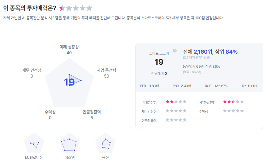 | 콘텐트리중앙 종목진단 (출처=초이스스탁) |