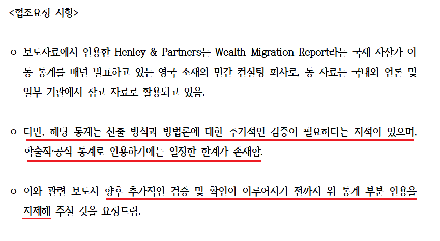 하지만, 해당 자료의 출처인 영국 컨설팅업체 ‘헨리 앤 파트너스(Henley & Partners)’ 및 ‘TPA’ 등의 통계는 실질적인 이민국 데이터가 아닌 ‘추정치’에 불과했습니다.