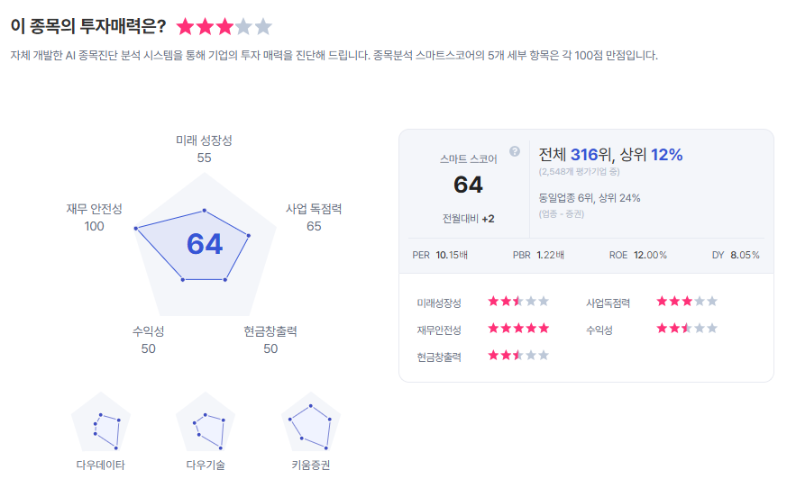| 삼성증권 종목진단 (출처=초이스스탁) |