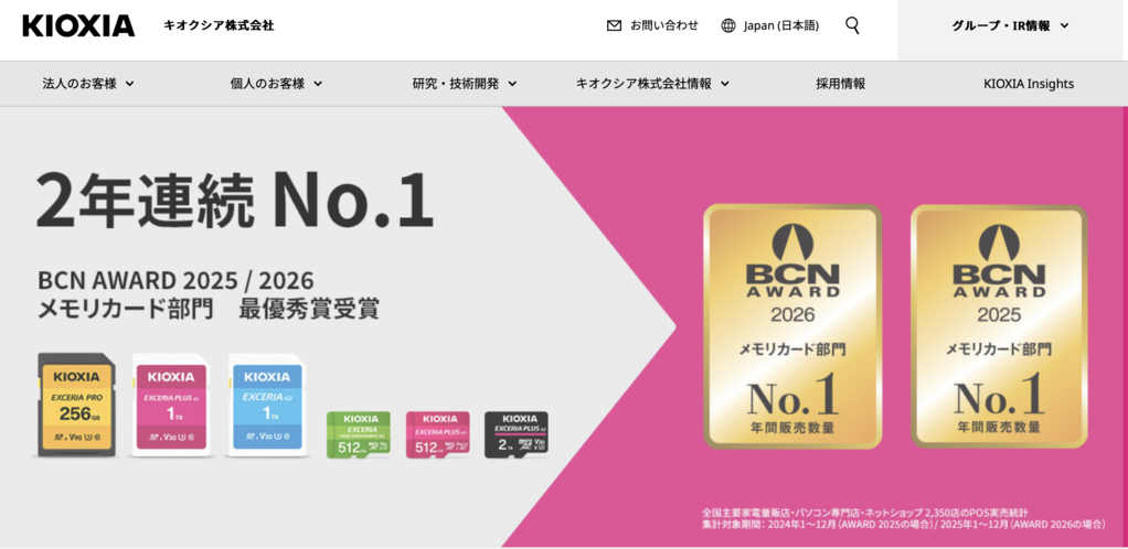 키옥시아의 주력 제품인 NAND형 플래시 메모리는 공급과 수요 불균형에 따라 가격 변동이 크지만, 현재는 AI 추론 용도로 활용 범위가 확대되고 있다.