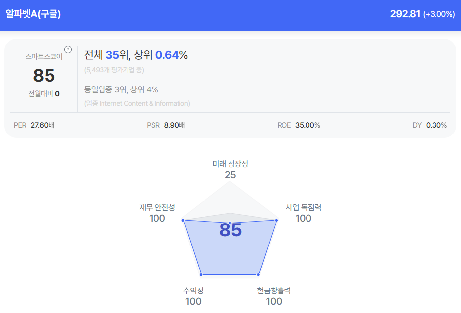 | 알파벳 종목진단 (출처=초이스스탁) |