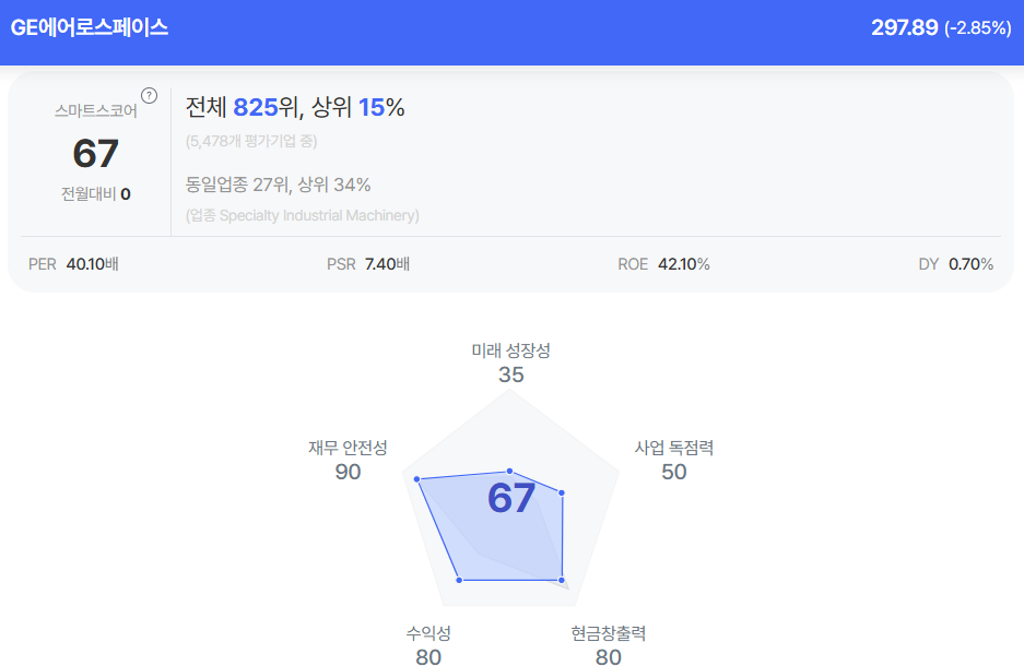 GE에어로스페이스 종목진단 (출처=초이스스탁) |