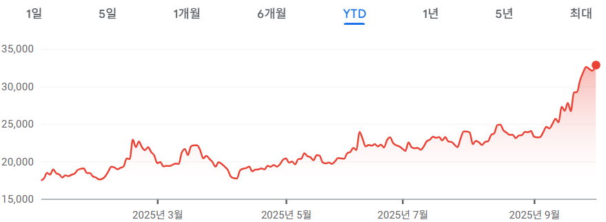 [알파경제=김교식 기자] 30일 인공지능공시분석 프로그램 타키온월드에 따르면 원익머트리얼즈는 전날 한국거래소 기준(이하 한국거래소 기준) 2.34% 오른 3만2850원에 마감했다. 이날 기준 올해 수익률(YTD)은 88.36%에 달한다.