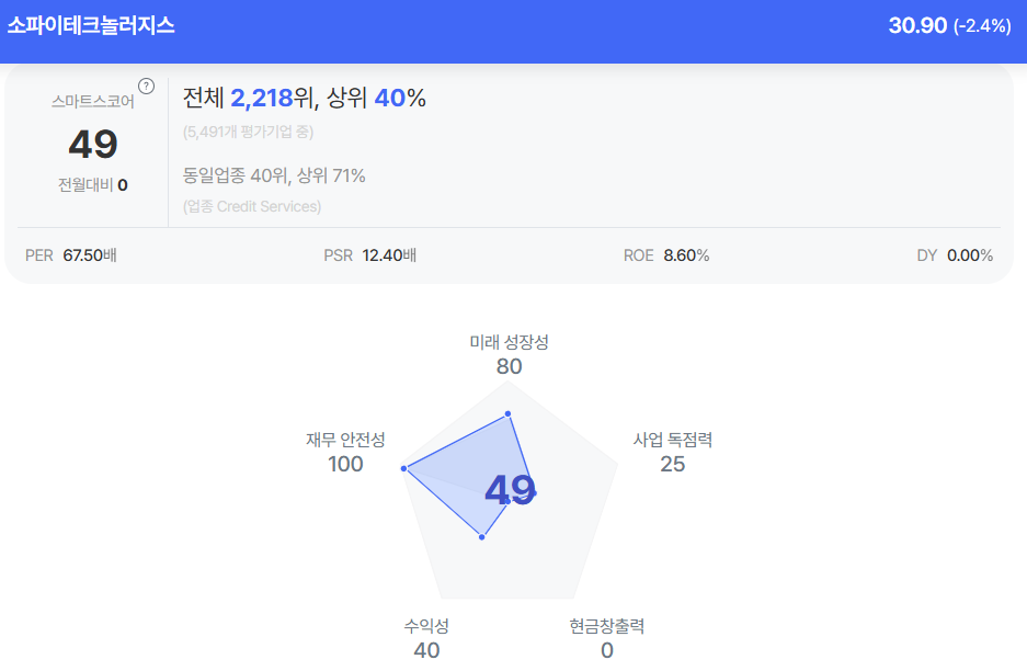 | 소파이테크놀러지스 종목진단 (출처=초이스스탁) |