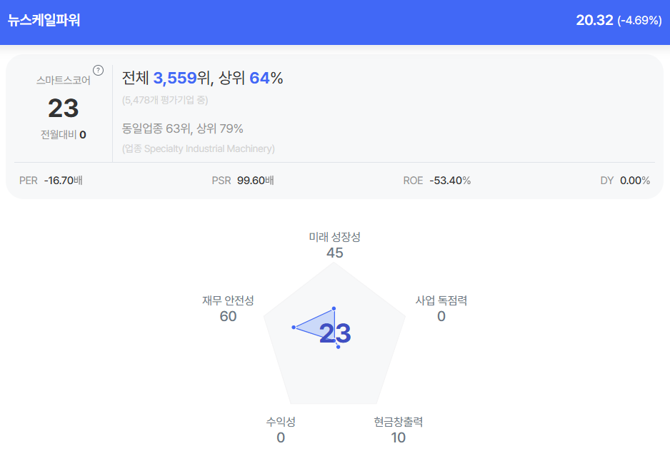| 뉴스케일파워 종목진단 (출처=초이스스탁) |