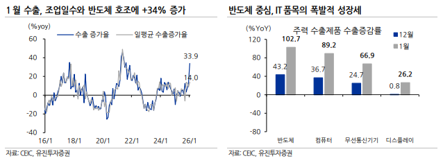 방인성 유진투자증권 연구원은 "관세 불확실성 등 2월 조업일수 감소에 따른 영향이 있으나, 반도체 중심의 수출 호조와 수출 품목 다변화로 양호한 흐름이 지속될 것"이라고 예상했다.