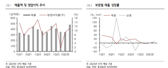 흥국증권에 따르면, 한섬의 3분기 매출액은 3416억원으로 전년 대비 3.3% 감소하고, 영업이익은 311억원으로 4.8% 줄어 상반기의 부진이 이어질 것으로 추정된다. 지난해 3분기까지의 높은 기저효과가 적지않게 부담으로 작용할 것이기 때문이란 설명이다.