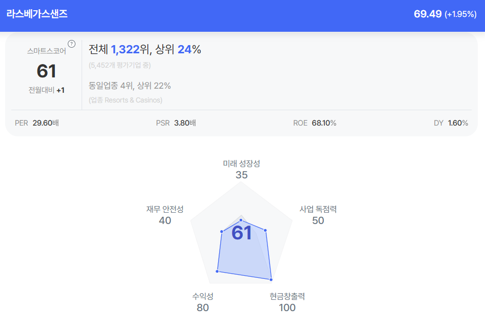 | 라스베가스샌즈 종목진단 (출처=초이스스탁) |