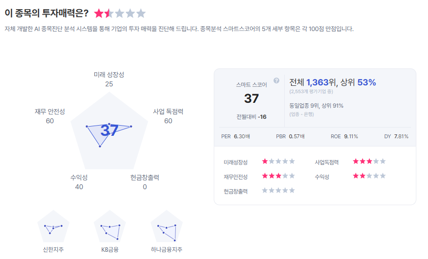 | 우리금융지주 종목진단 (출처=초이스스탁) |