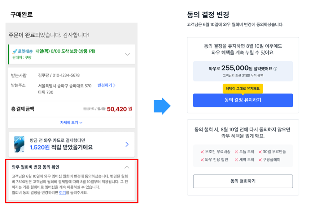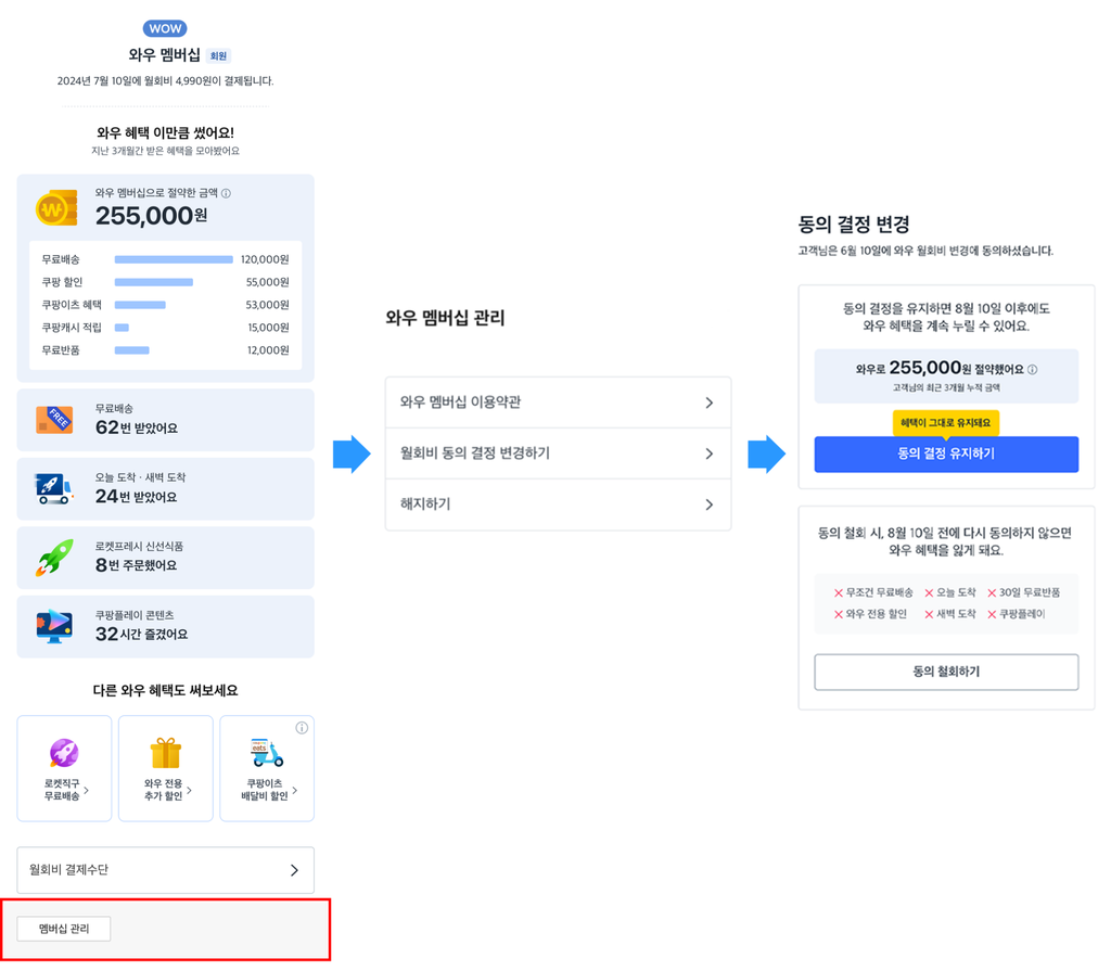 [와우 멤버십 월회비 변경 동의 재확인 방법]