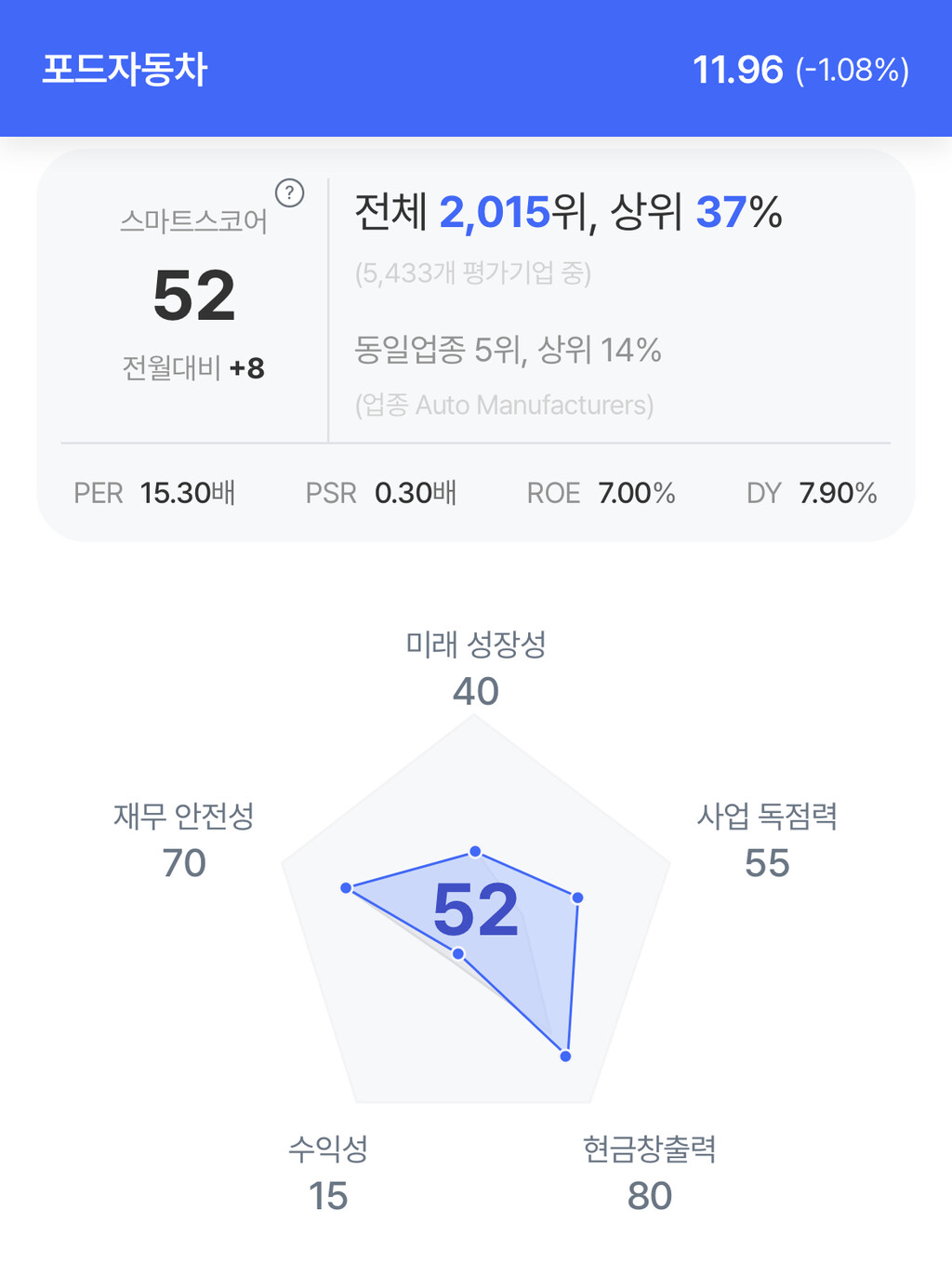 | 포드 자동차 주가 분석. (자료=초이스스탁) |