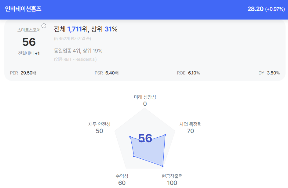 | 인비테이션홈스 종목진단 (출처=초이스스탁) |