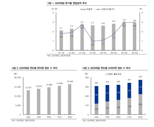 8일 남성현 IBK투자증권 연구원은 GS리테일에 대해 "주력 사업부인 편의점 기여도 확대와 슈퍼마켓 사업부 안정화가 기대되어 긍정적"이라며 투자의견 '매수'와 목표주가 3만3000원을 유지했다.