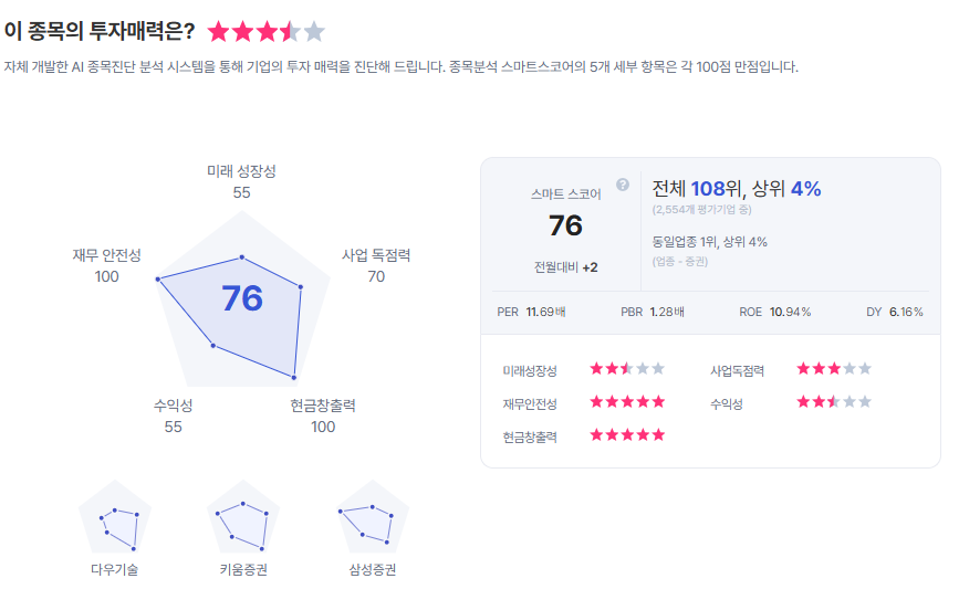 | NH투자증권 종목진단 (출처=초이스스탁) |