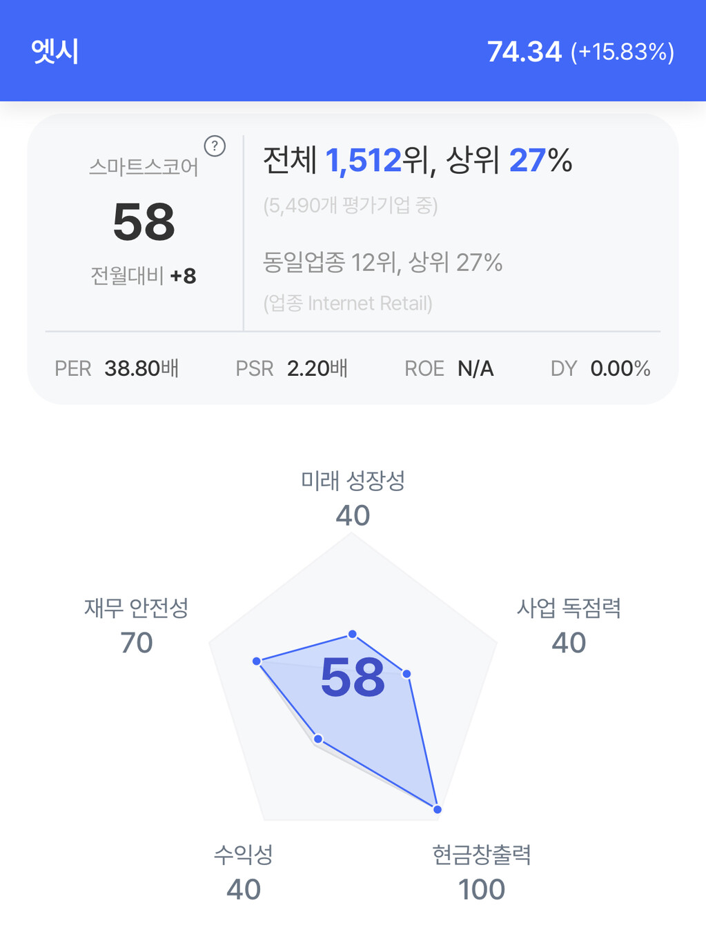 | 엣시 주가 분석. (자료=초이스스탁) |