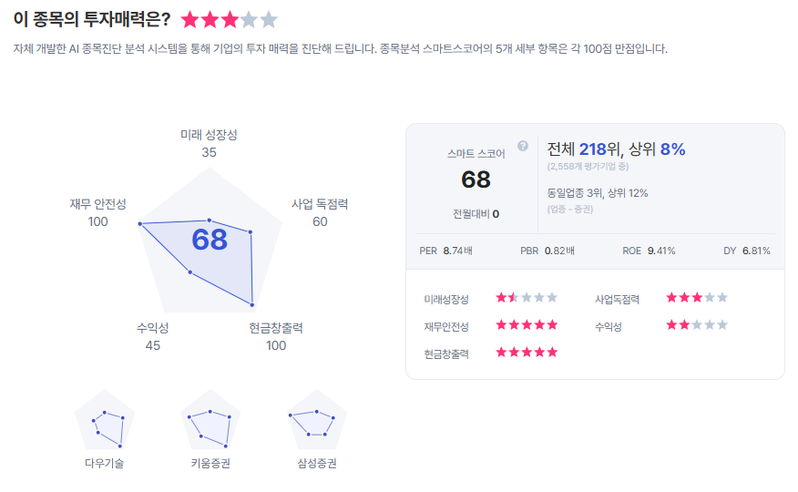 | NH투자증권 종목진단 (출처=초이스스탁) |