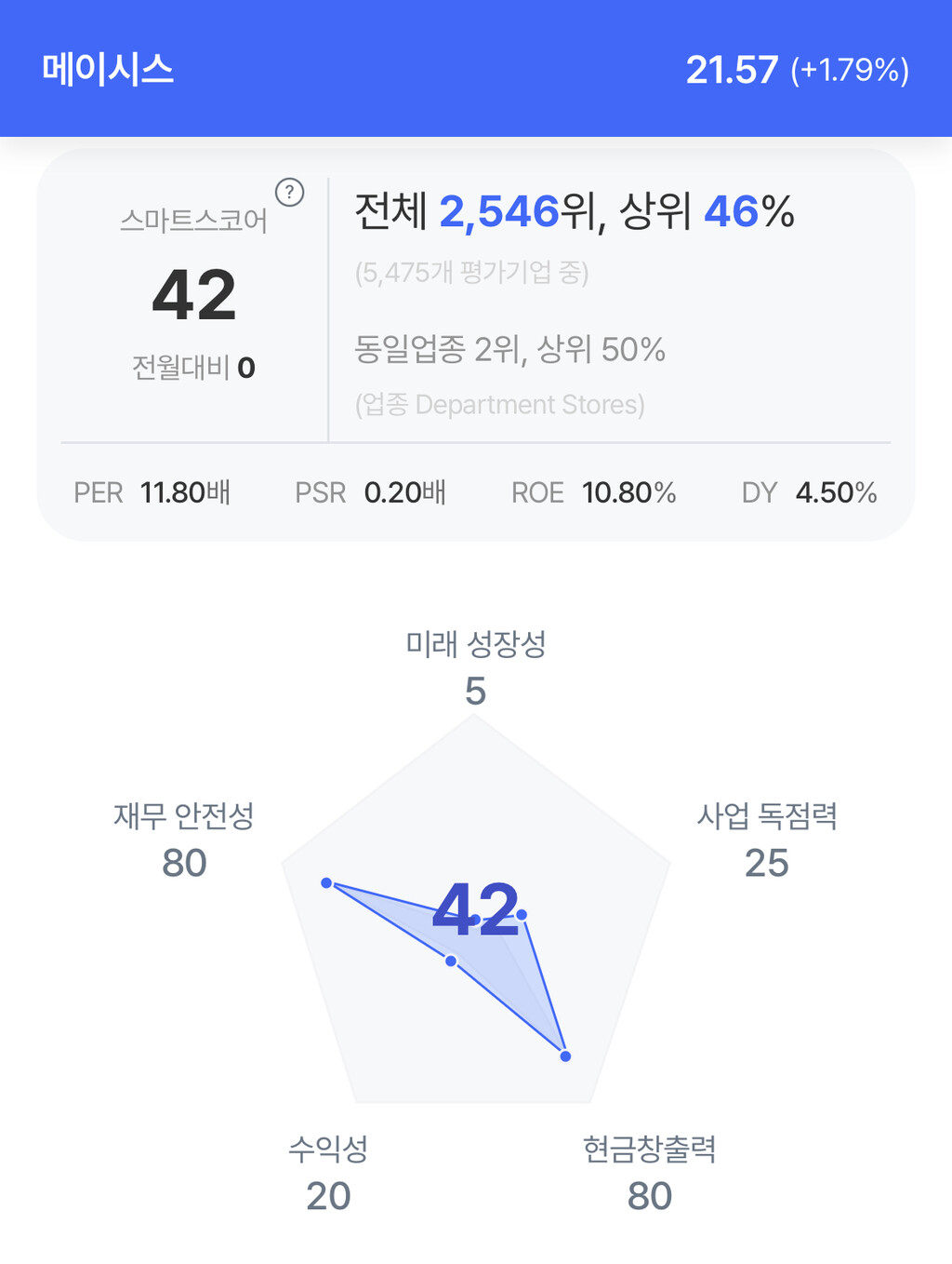 | 메이시스 주가 분석. (자료=초이스스탁) |