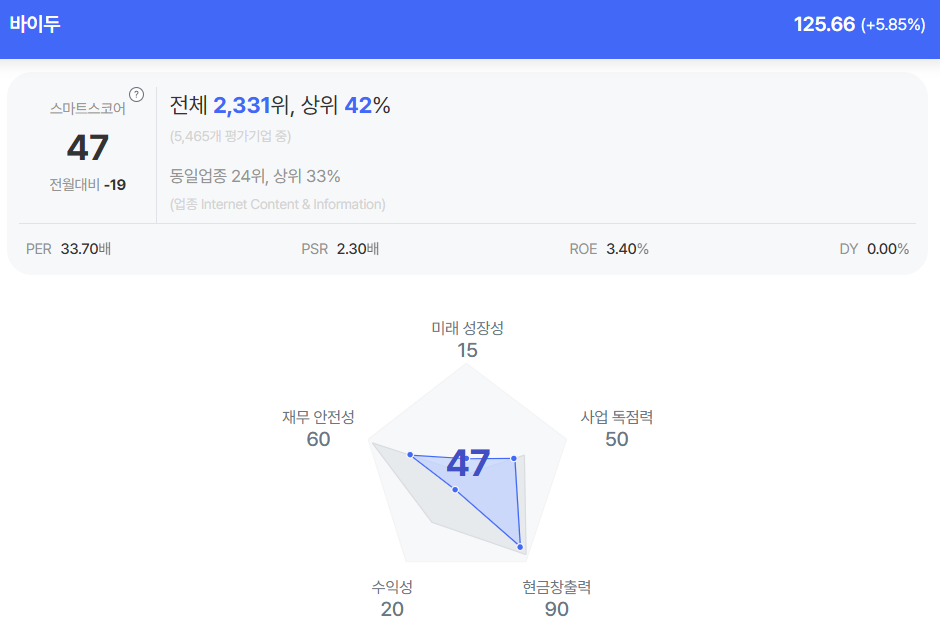 | 바이두 종목진단 (출처=초이스스탁) |