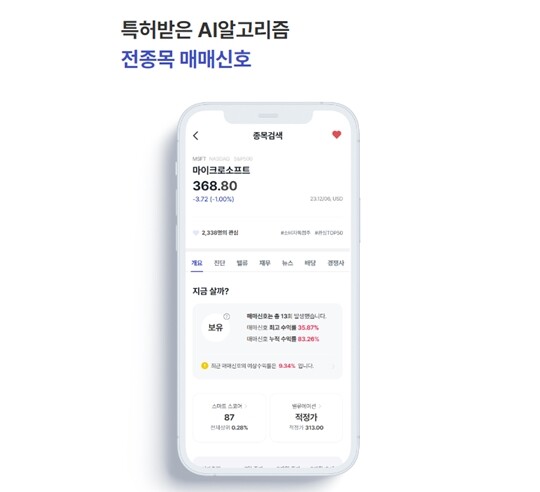 서비스에 가입하면 △특허받은 AI가 알려주는 매매타이밍 △매수부터 매도까지 알려주는 종목추천 △매일 아침 전일 미국증시 모닝 브리핑 △오늘 매매신호 종목, 급등주 등 테마 정보를 받아볼 수 있다.