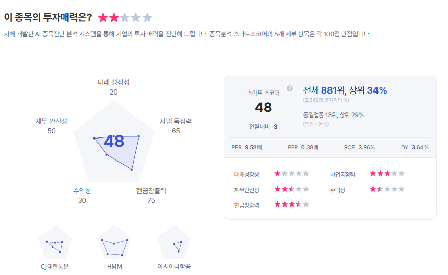 | 팬오션 종목진단 (출처=초이스스탁) |