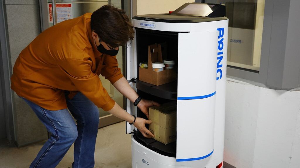 ‘브링'은 배송 로봇과 카카오모빌리티의 로봇 오픈 API 플랫폼 ‘브링온’이 결합된 상품이다.