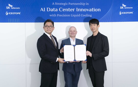 SK텔레콤은 SK엔무브, 글로벌 액체냉각 전문기업 ‘아이소톱(Iceotope)’과 차세대 냉각 기술 및 솔루션 분야 협업을 위한 업무협약(MOU)을 체결했다고 28일 밝혔다.