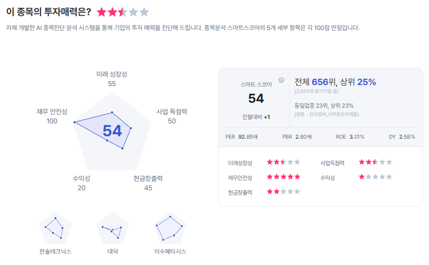 | 대덕전자 종목진단 (출처=초이스스탁) |