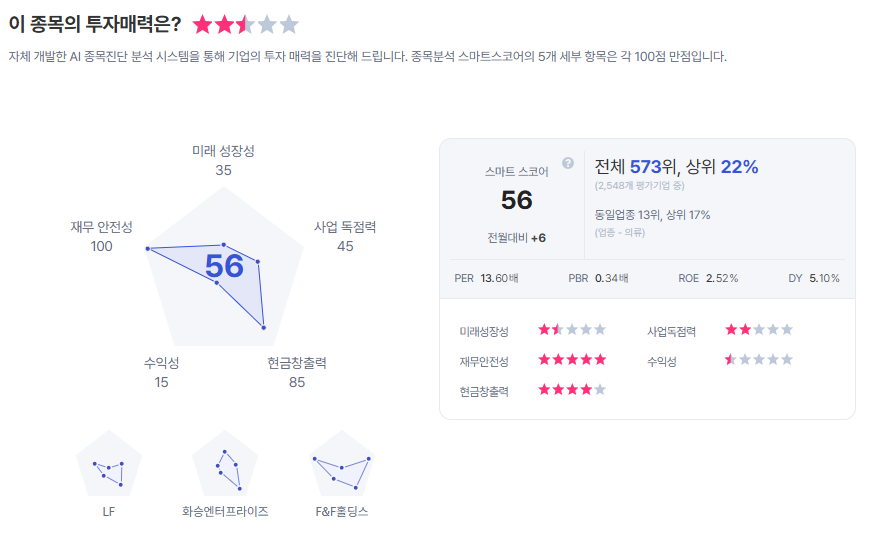 | 한섬 종목진단 (출처=초이스스탁) |