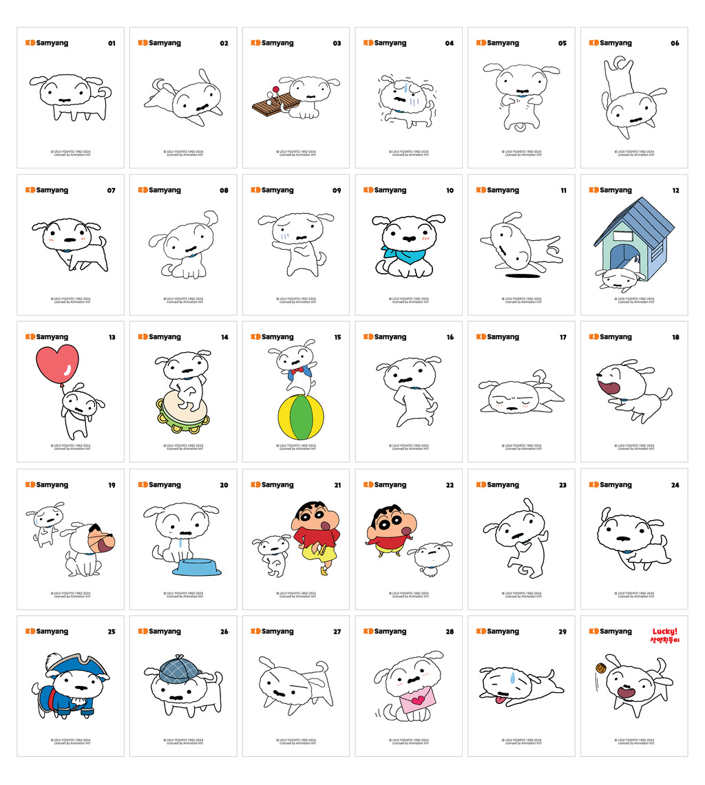 삼양식품은 신제품 출시와 함께 흰둥이를 콘셉트로 제작한 총 30종의 흰둥이 짱구씰도 공개하고, 제품 속에 1장씩 동봉했다.