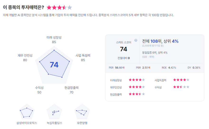 | 셀트리온 종목진단 (출처=초이스스탁) |