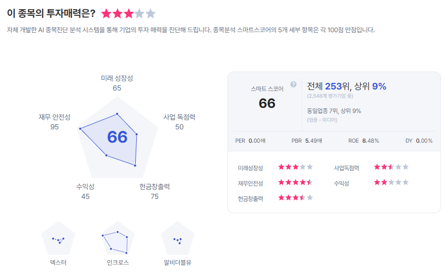 | 더핑크퐁컴퍼니 종목진단 (출처=초이스스탁) |