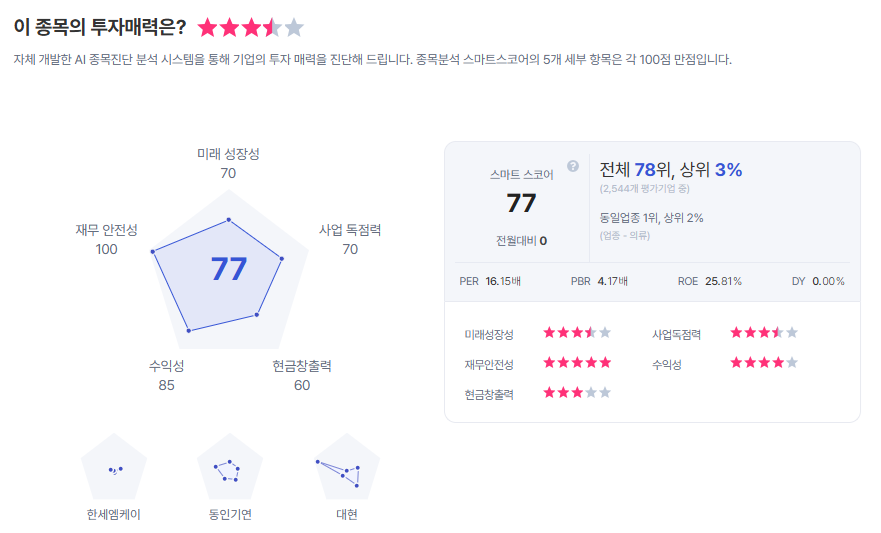 | 감성코퍼레이션 종목진단 (출처=초이스스탁) |