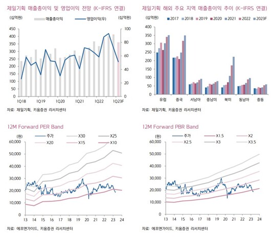 키움증권 12일 제일기획에 대해, 매크로 불안이 덮친 1분기는 광고산업 및 주요 광고주의 시장 전망 조정에 따라 영업이익 역성장이 나타날 전망이지만 2분기는 광고 성수기로 접어들고, 매체의 둔화에도 불구하고 디지털 및 리테일 강점이 지속될 것이라고 판단했다. 투자의견 '매수'를 유지하고 목표주가는 2만9500원으로 하향조정했다.