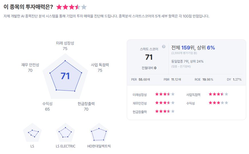| 효성중공업 종목진단 (출처=초이스스탁) |