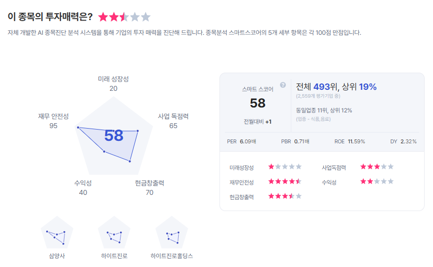 | 현대그린푸드 종목진단 (출처=초이스스탁) |