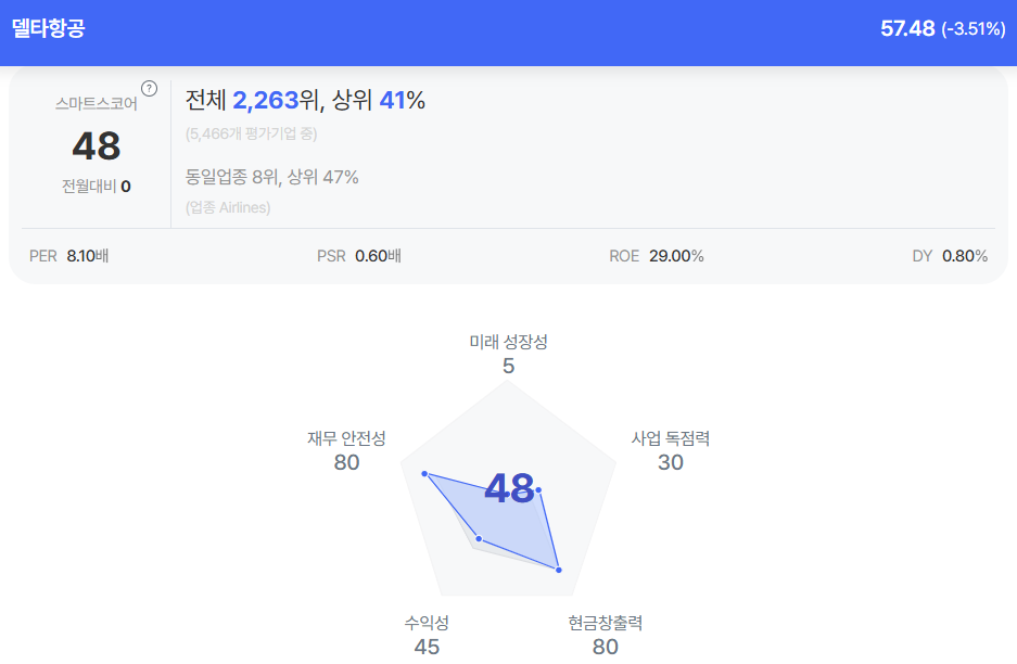 | 델타항공 종목진단 (출처=초이스스탁) |
