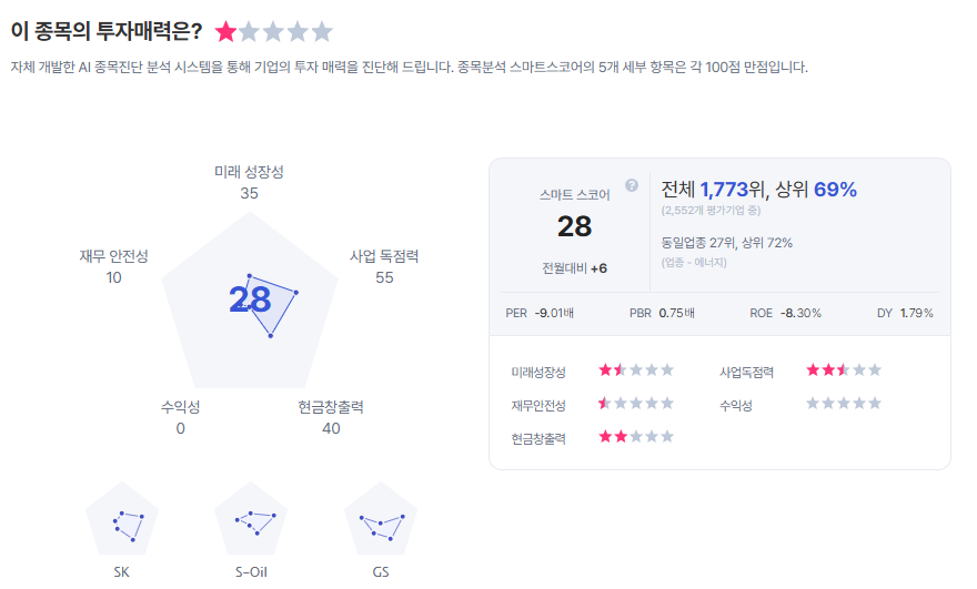 | SK이노베이션 종목진단 (출처=초이스스탁) |