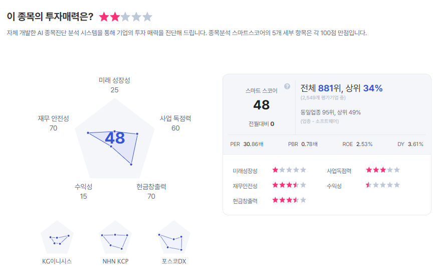 오강호 연구원은 "2025년 실적 성장은 긍정적이나 수익성 개선 및 뚜렷한 핵심 성장 동력이 필요하다"라며 "피지컬AI 사업 속도 가속화, 자회사 실적 개선, 그룹사 IT서비스 투자 확대 등 성장 아이디어는 충분한 상황이고 신사업으로 판단되는 전기차 충전, 메타버스 등 시장 움직임도 주목할 필요가 있다"라고 말했다.